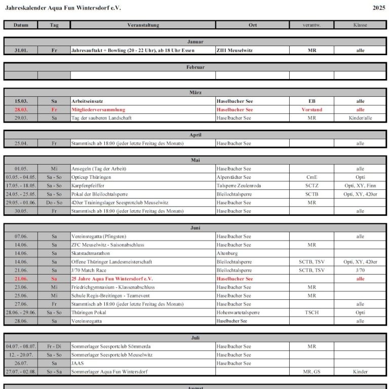 Vereinskalender